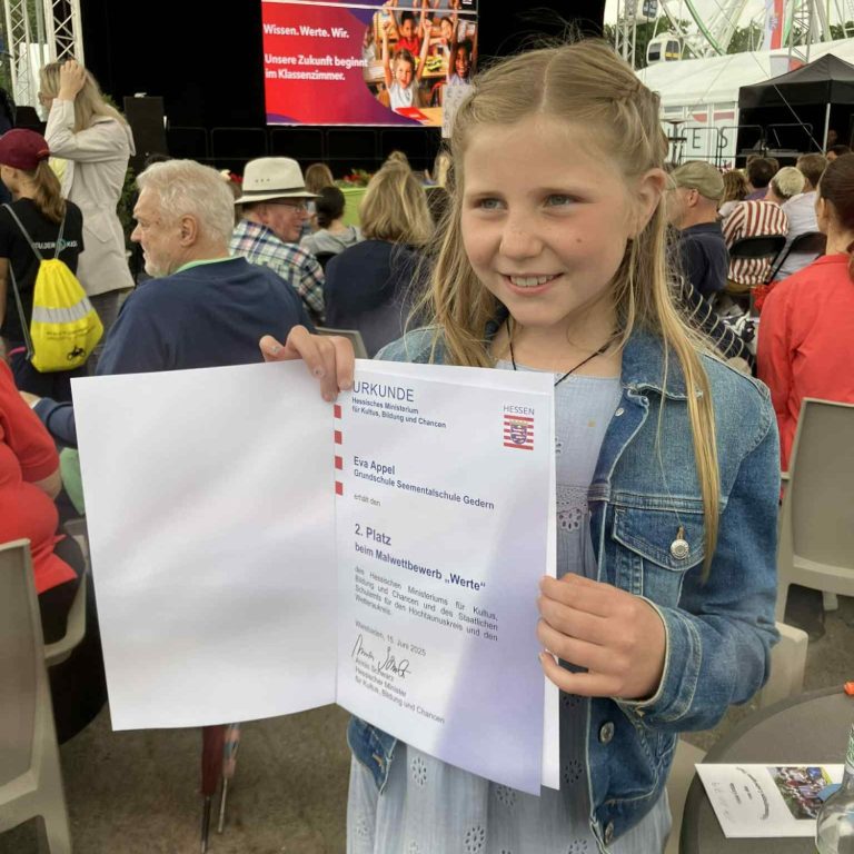 Unsere ehemalige Schülerin Eva Appel hat beim landesweiten Malwettbewerb zum Thema „Werte“ den zweiten Platz in der Kategorie Grundschule erreicht.